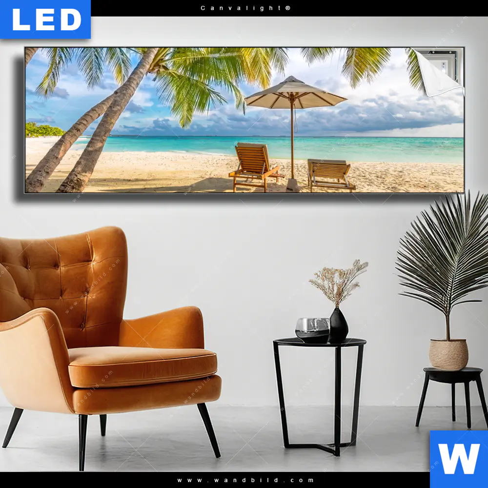 Canvalight® TEX Leuchtbild | Paradies unter Palmen | Panorama