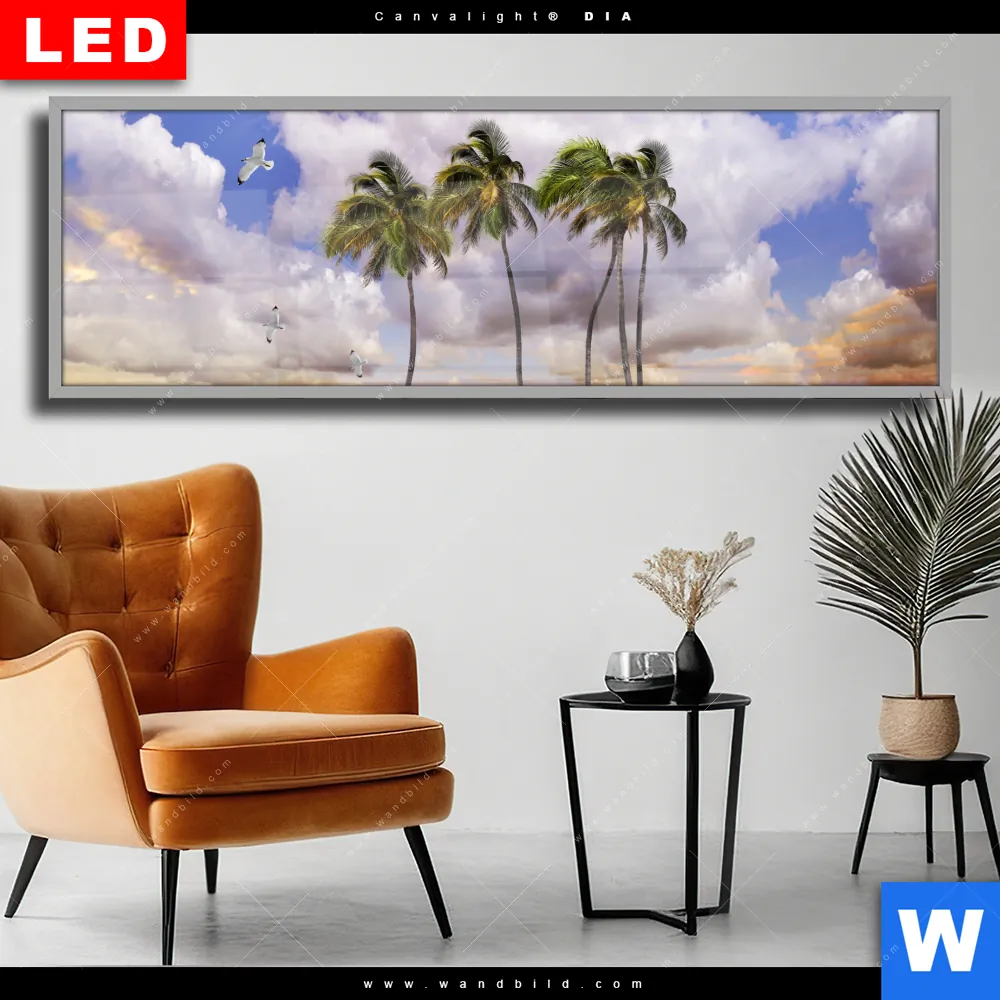 Wechselmotiv Acrylglas Canvalight® DIA | Palmen auf Insel | Panorama