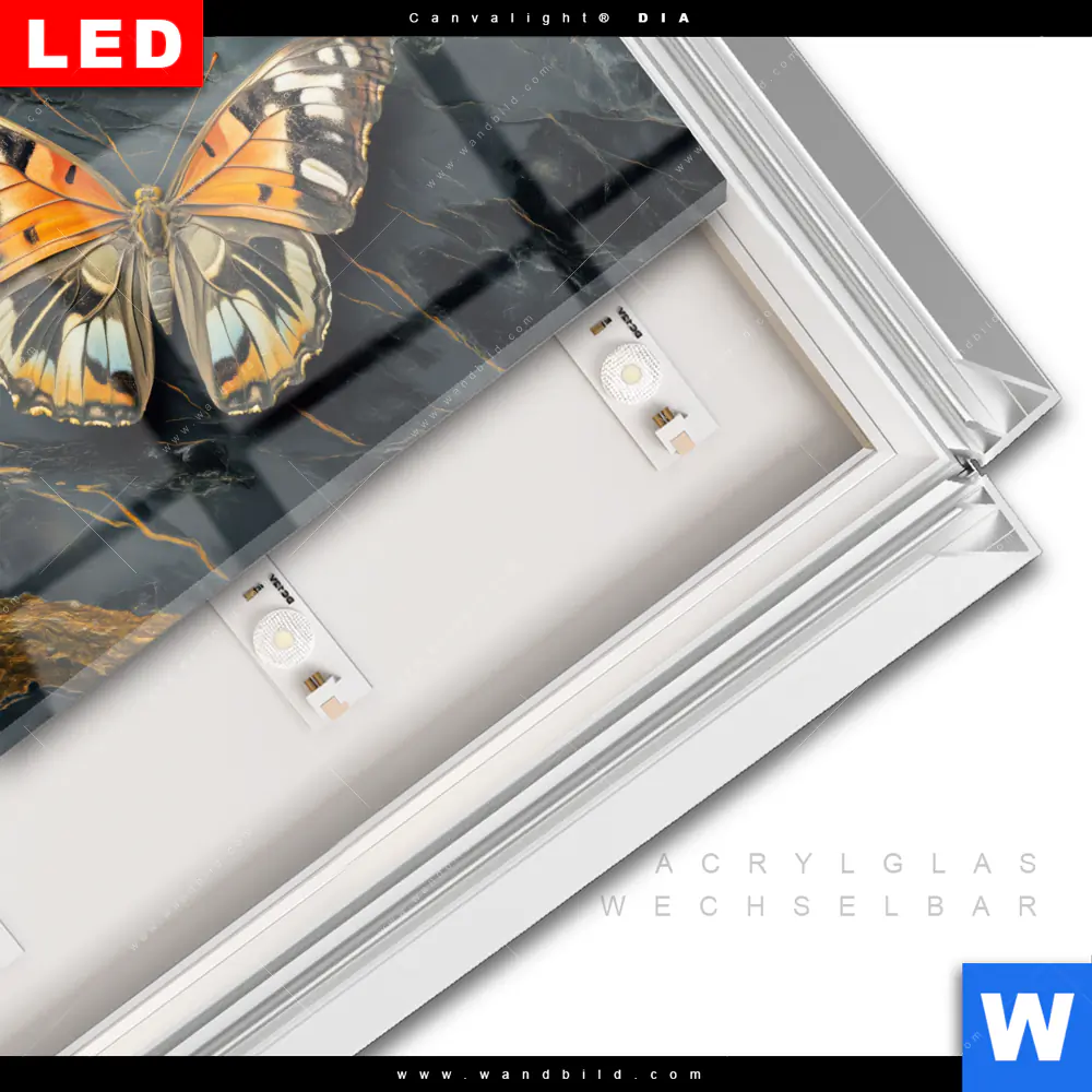 Canvalight® DIA Leuchtbild | Schmetterling auf Marmor | Querformat