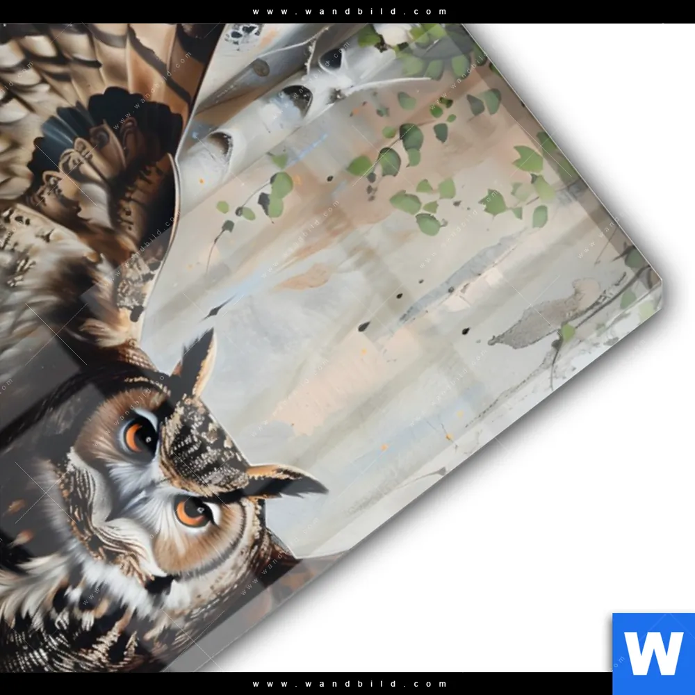 Acrylglasbild | Eule im Birkenwald | Hochformat