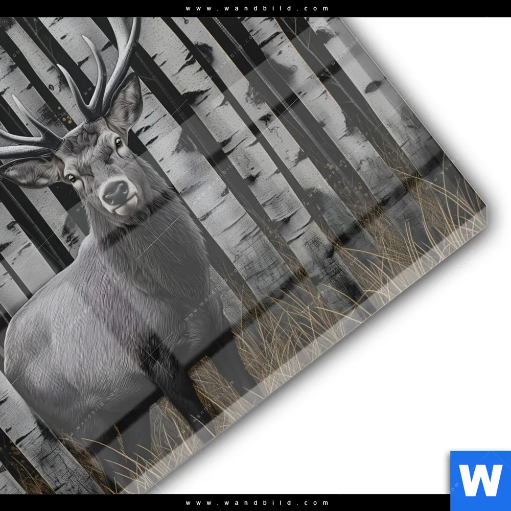 Acrylglasbild | Hirschporträt vor Birken | Rund