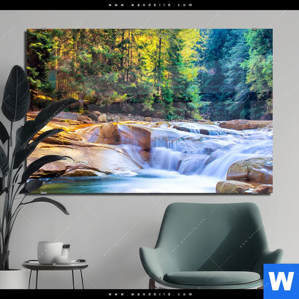 Acrylglasbild | Schöner Wasserfall im Wald | Querformat