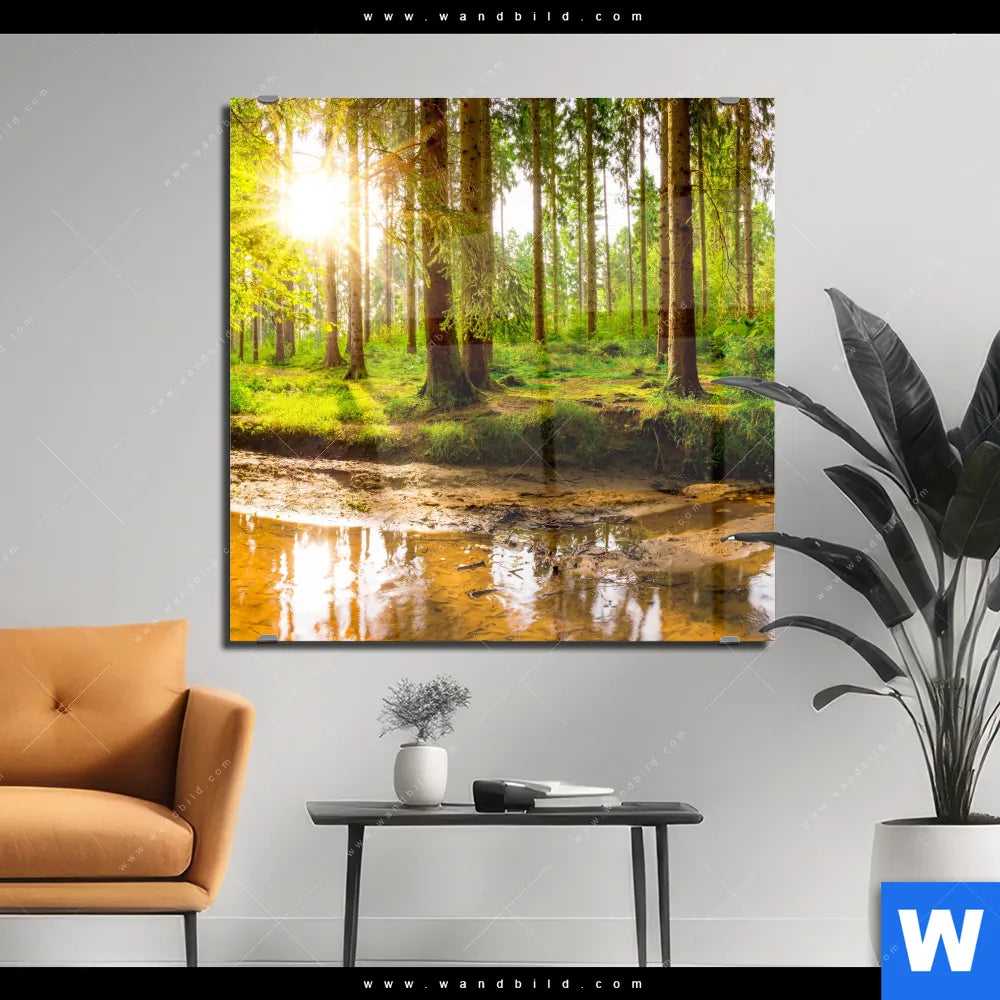 Acrylglasbild | Sonne im grünen Wald | Quadrat