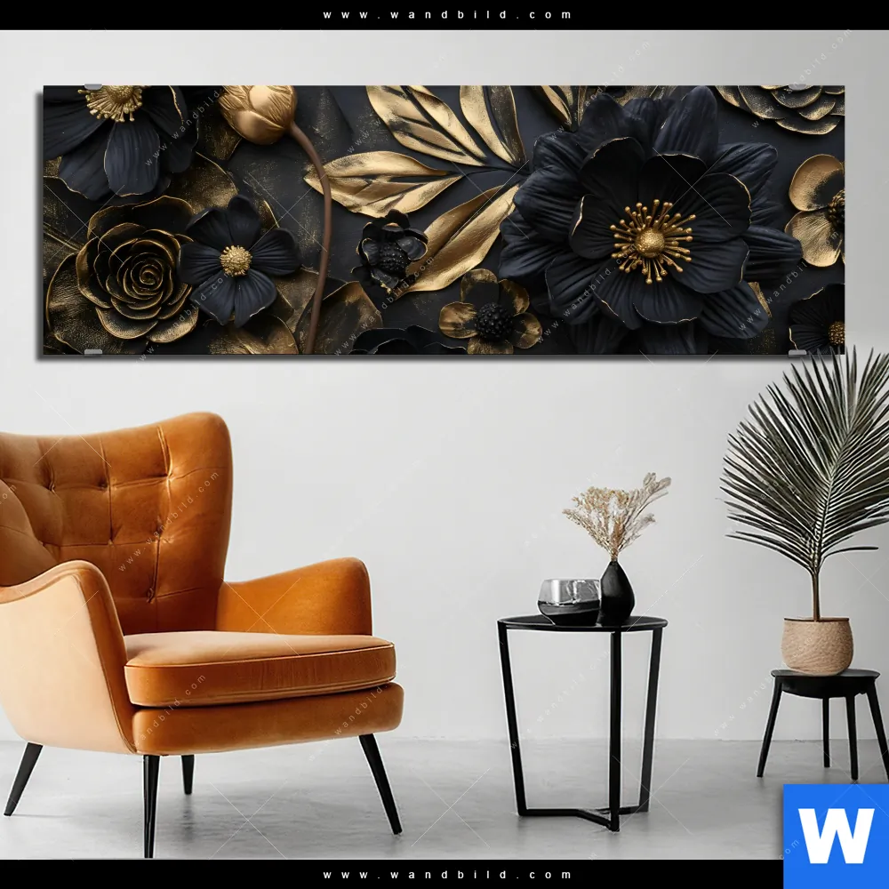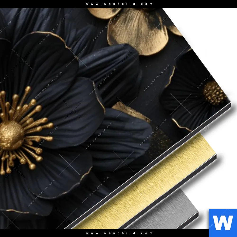 Alu-Dibond Bild | Schwarze und goldene Blüten | Panorama