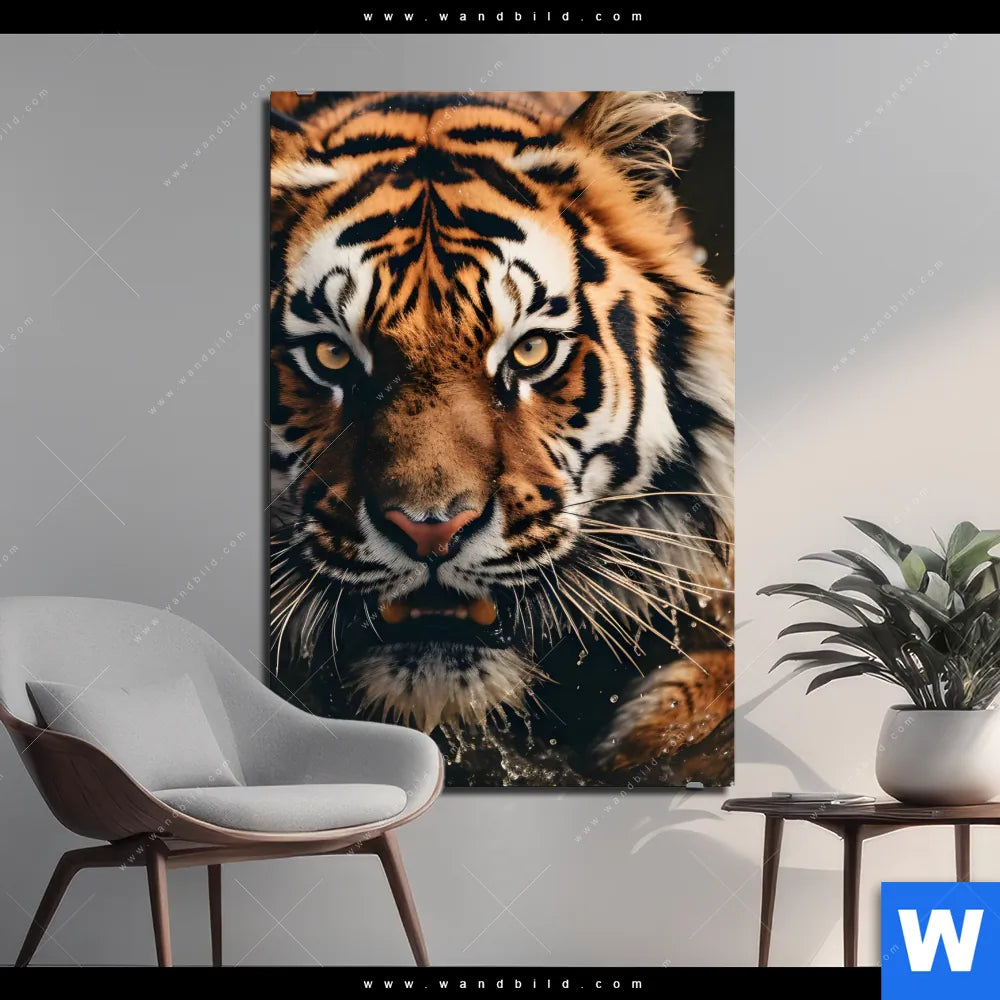 Alu-Dibond Bild | Tiger im Wasser | Hochformat