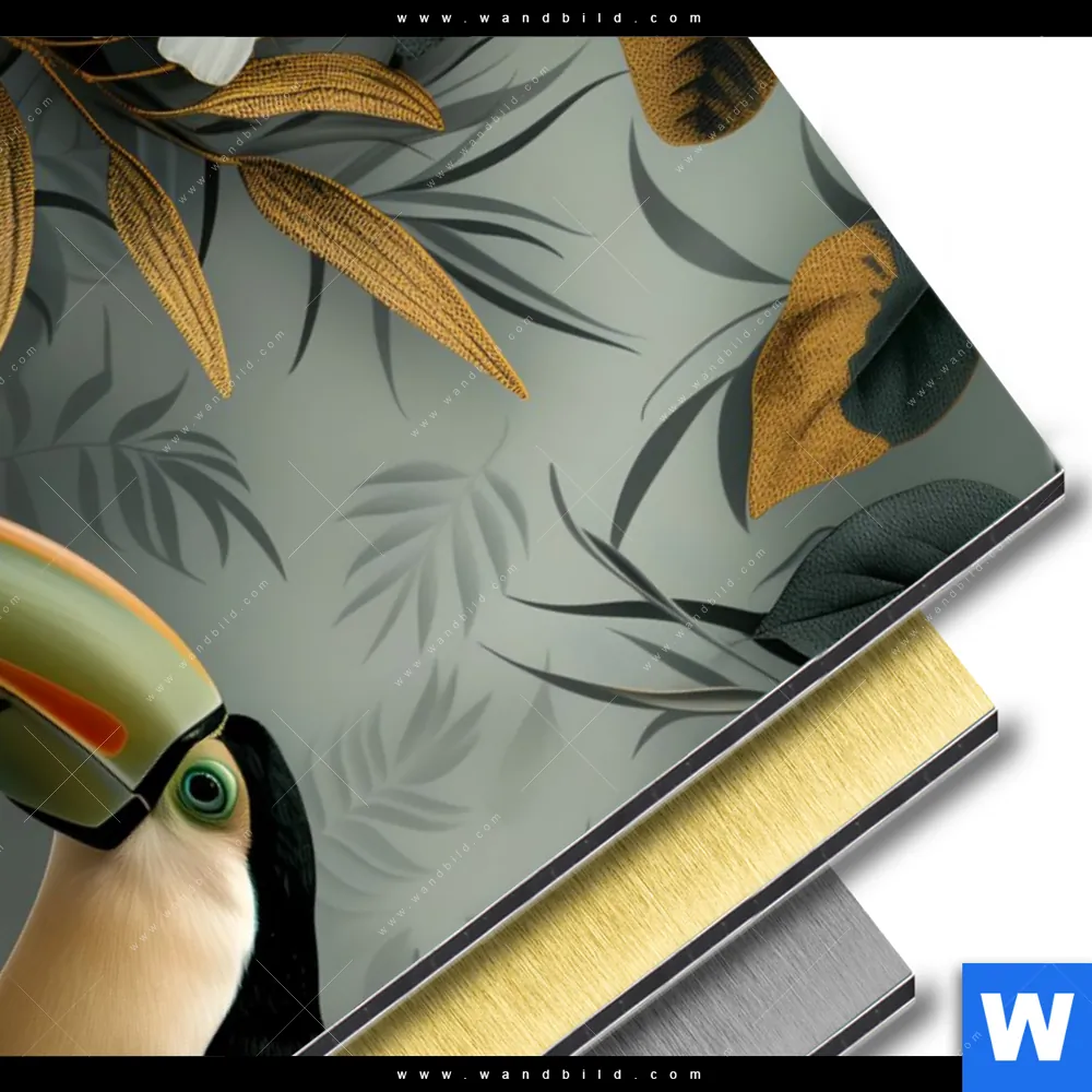 Alu-Dibond Bild | Tukan im goldenen Regenwald | Hochformat