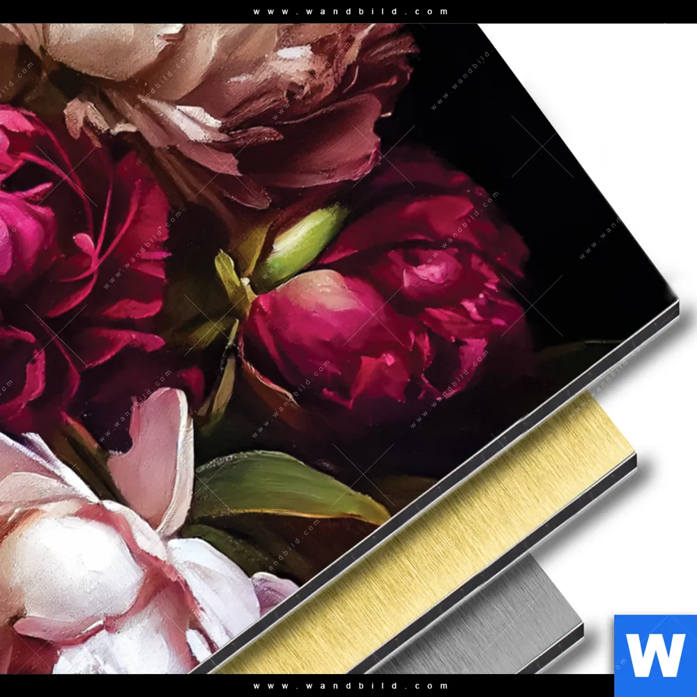 Aluminiumbild gebürstet | Pfingstrosen im Barockstil | Querformat