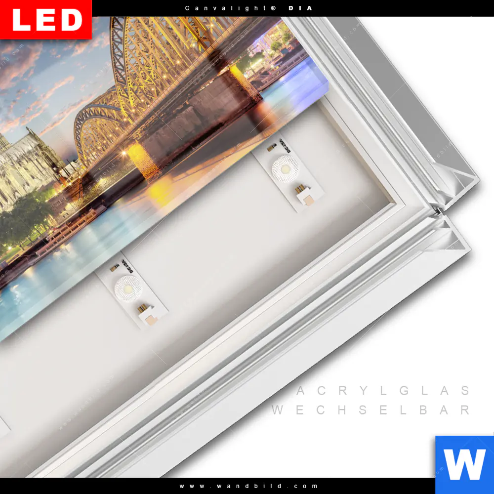 LED-Glasbild mit austauschbarem Acrylglas-Druck (Wechselbild)