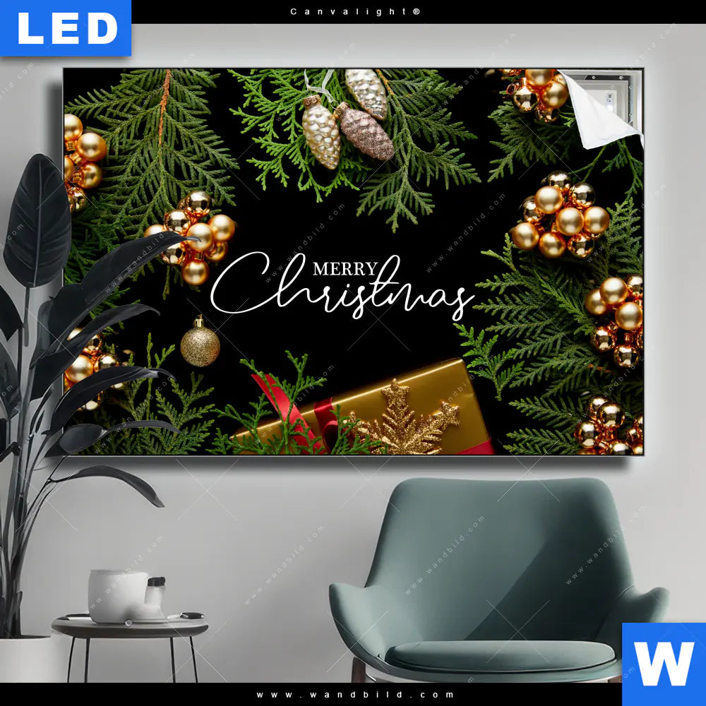 Canvalight® Leuchtbild | Goldene Weihnachtsgrüße | Querformat