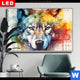 Wechselmotiv Acrylglas Canvalight® DIA | Wolf mit bunten Farbspritzern | Hochformat