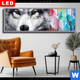 Wechselmotiv Acrylglas Canvalight® DIA | Wolf mit bunten Farbspritzern | Quadrat