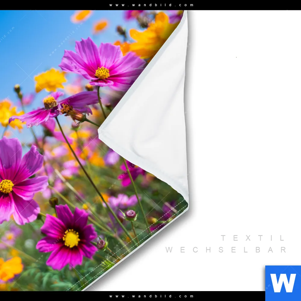 Wechselmotiv Textil | Blumenwiese unter blauem Himmel | Querformat
