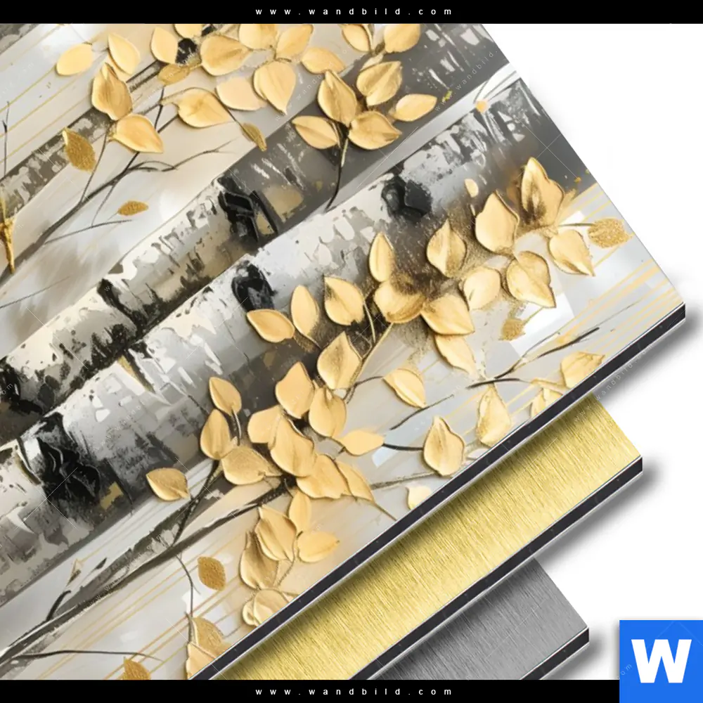 Aluminiumbild gebürstet | Abstrakter Birkenwald | Hochformat
