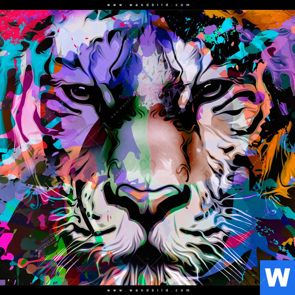 Aluminiumbild gebürstet | Bunter Tiger Schwarz | Hochformat