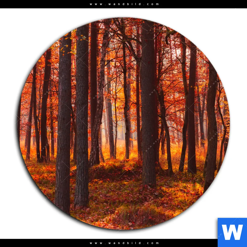Aluminiumbild gebürstet | Herbstwald | Rund