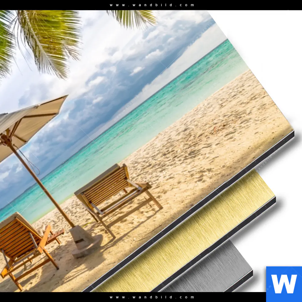 Strand - Meer, Landschaften Aluminiumbild mit metallischem Effekt inkl. vormontiertem Rückrahmen