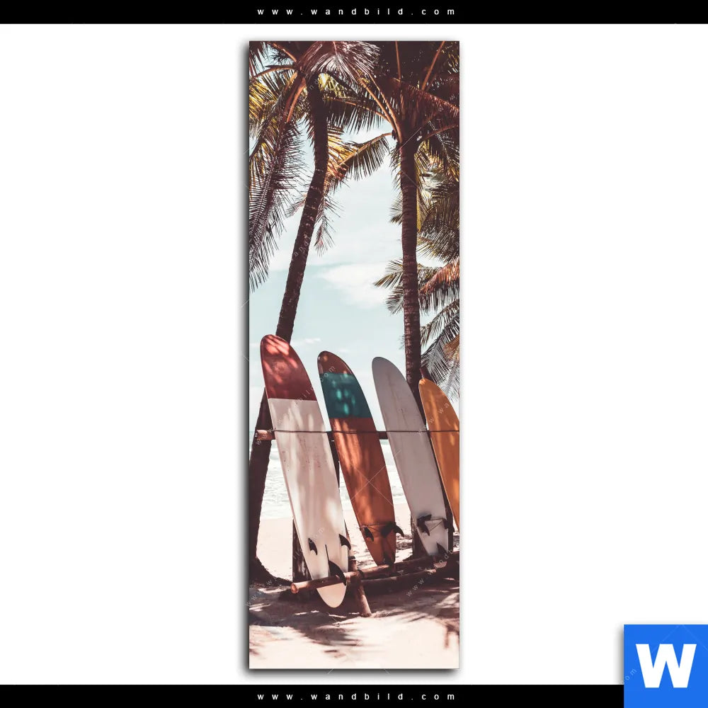 Aluminiumbild gebürstet | Surfbretter und Palmen | Schmal