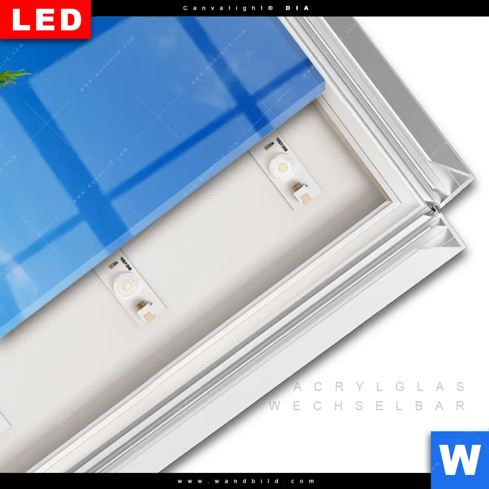 LED-Glasbild mit austauschbarem Acrylglas-Druck (Wechselbild)