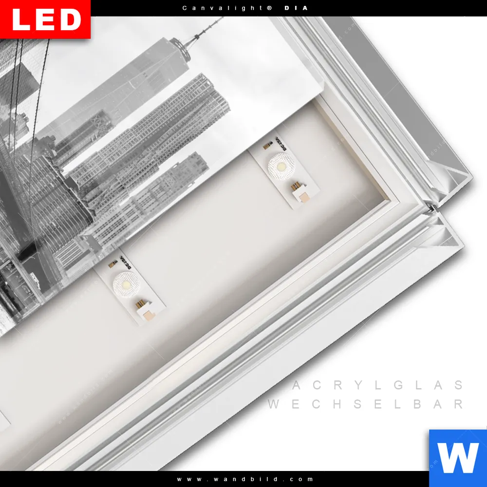 LED-Glasbild mit austauschbarem Acrylglas-Druck (Wechselbild)