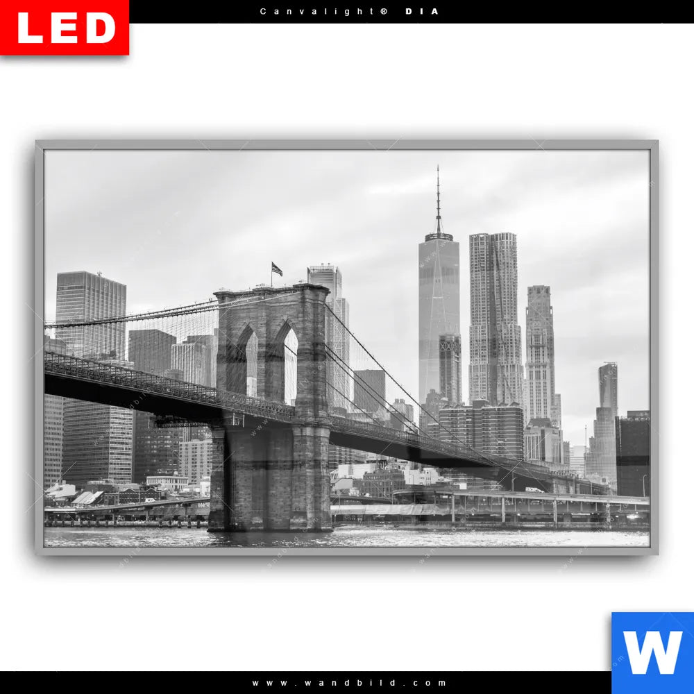 Canvalight® DIA Leuchtbild | Brooklyn Bridge Schwarzweiß | Querformat