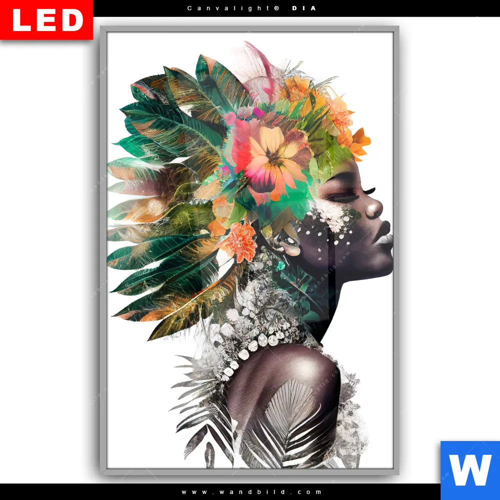 Canvalight® DIA Leuchtbild | Doppelbelichtung Porträt einer afrikanischen Frau | Hochformat