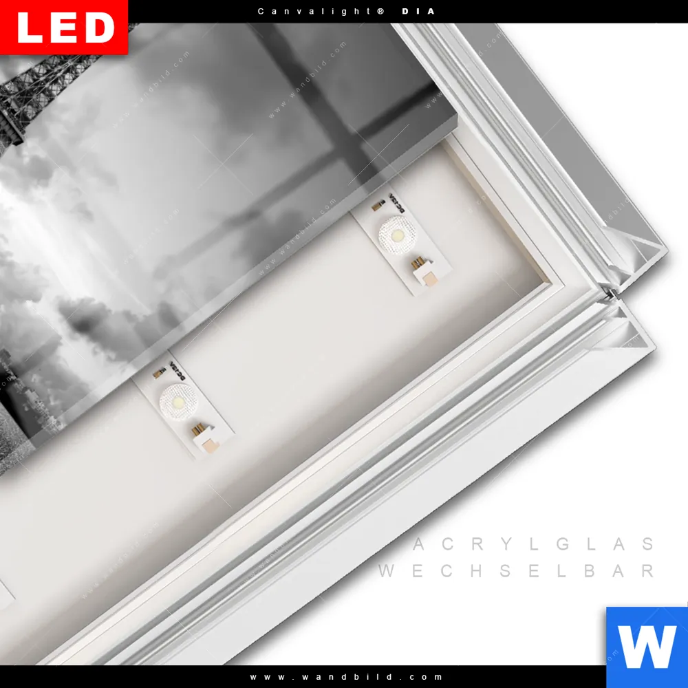 LED-Glasbild mit austauschbarem Acrylglas-Druck (Wechselbild)