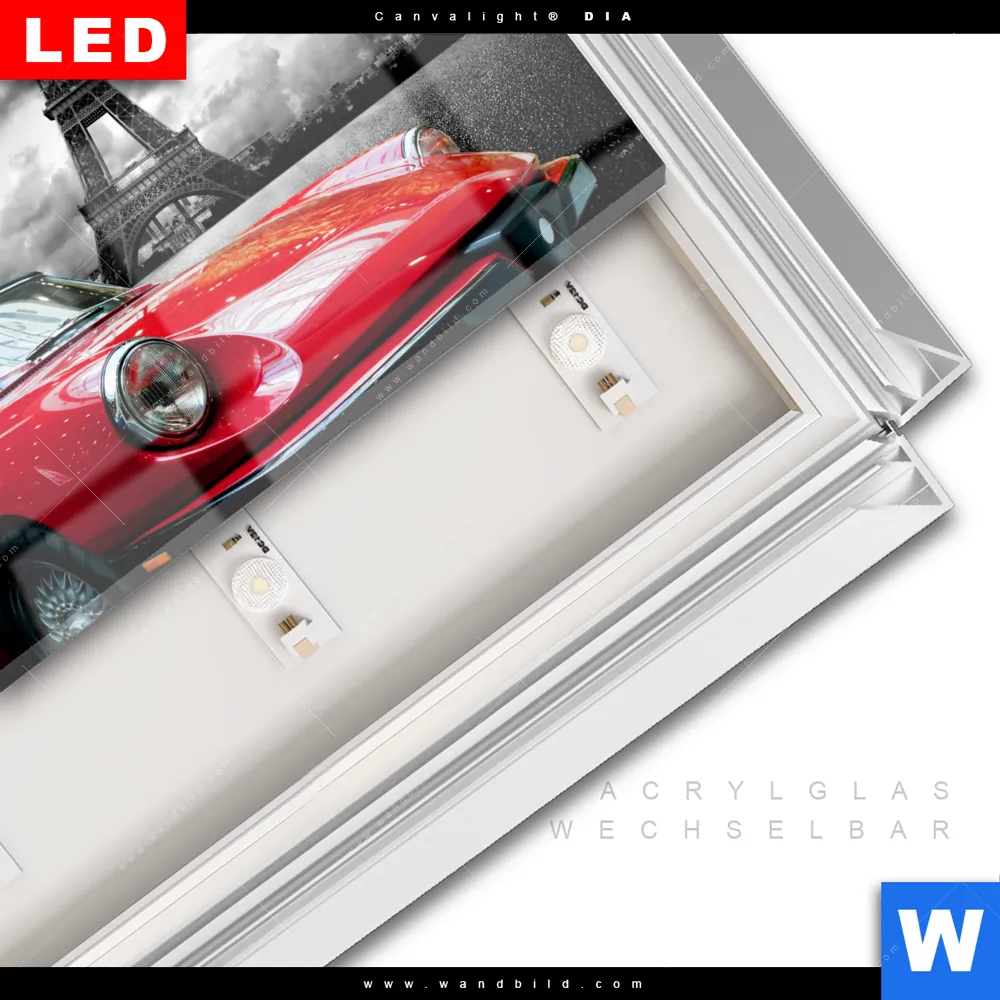 LED-Glasbild mit austauschbarem Acrylglas-Druck (Wechselbild)