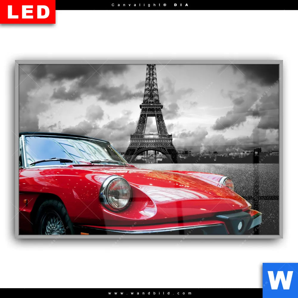 Canvalight® DIA Leuchtbild | Eiffelturm & Rotes Auto | Querformat