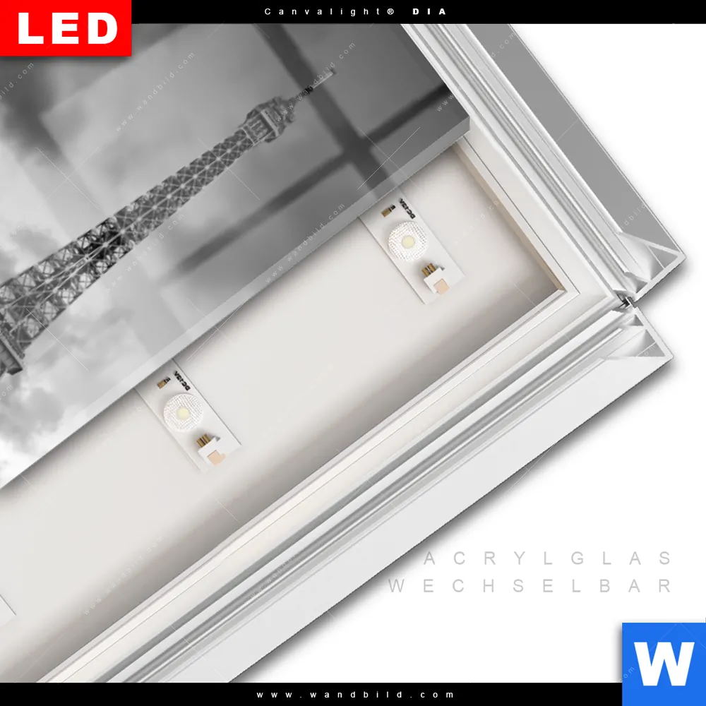 LED-Glasbild mit austauschbarem Acrylglas-Druck (Wechselbild)