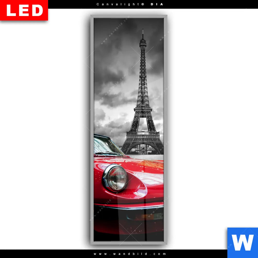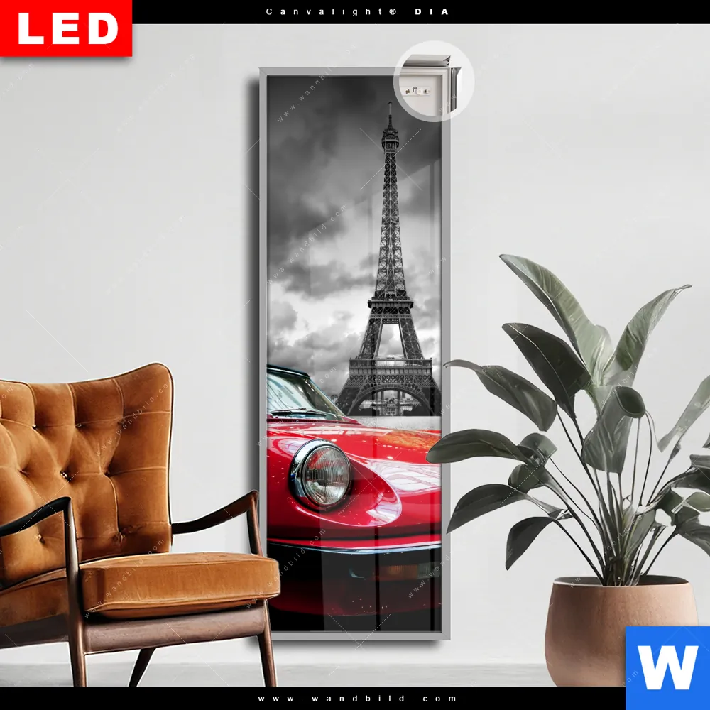 Canvalight® DIA Leuchtbild | Eiffelturm & Rotes Auto | Schmal