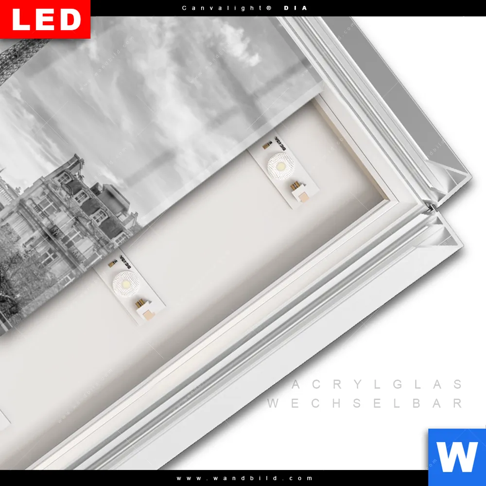 LED-Glasbild mit austauschbarem Acrylglas-Druck (Wechselbild)