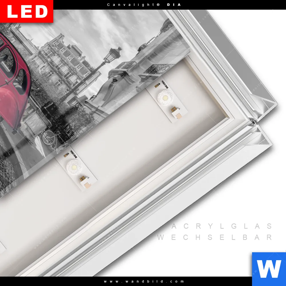 LED-Glasbild mit austauschbarem Acrylglas-Druck (Wechselbild)