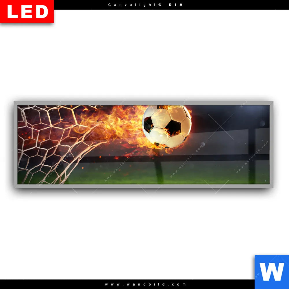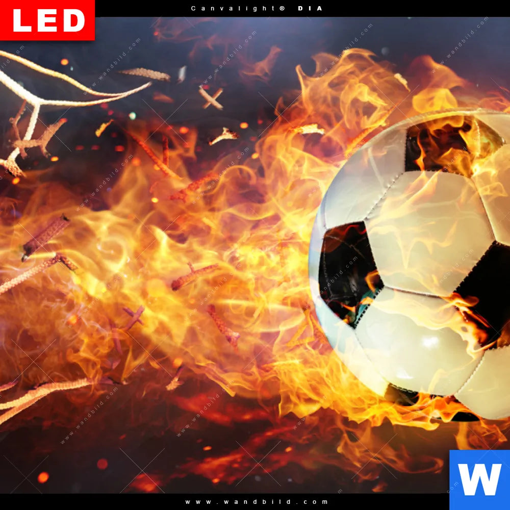 Canvalight® DIA Leuchtbild | Feuriger Fussball | Panorama