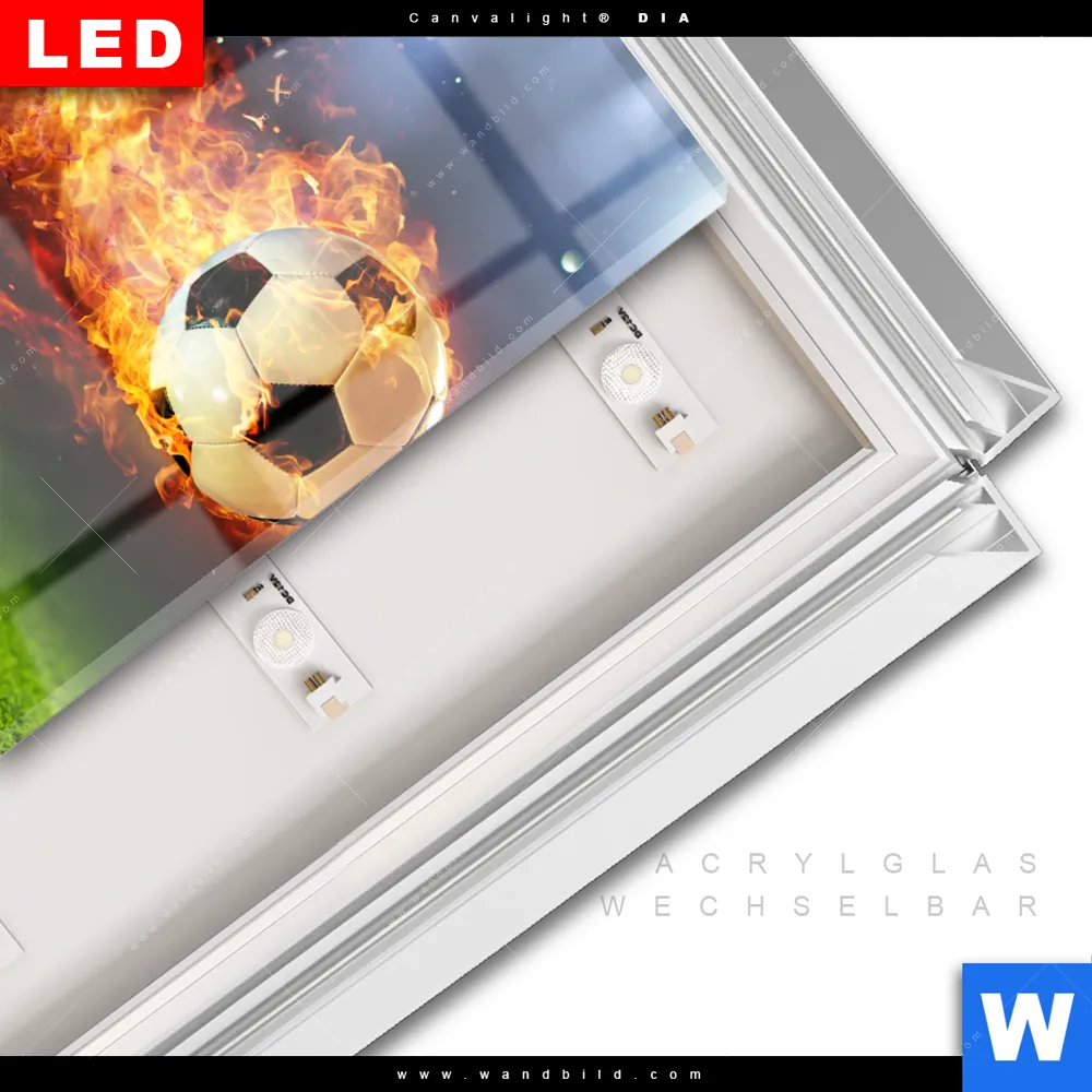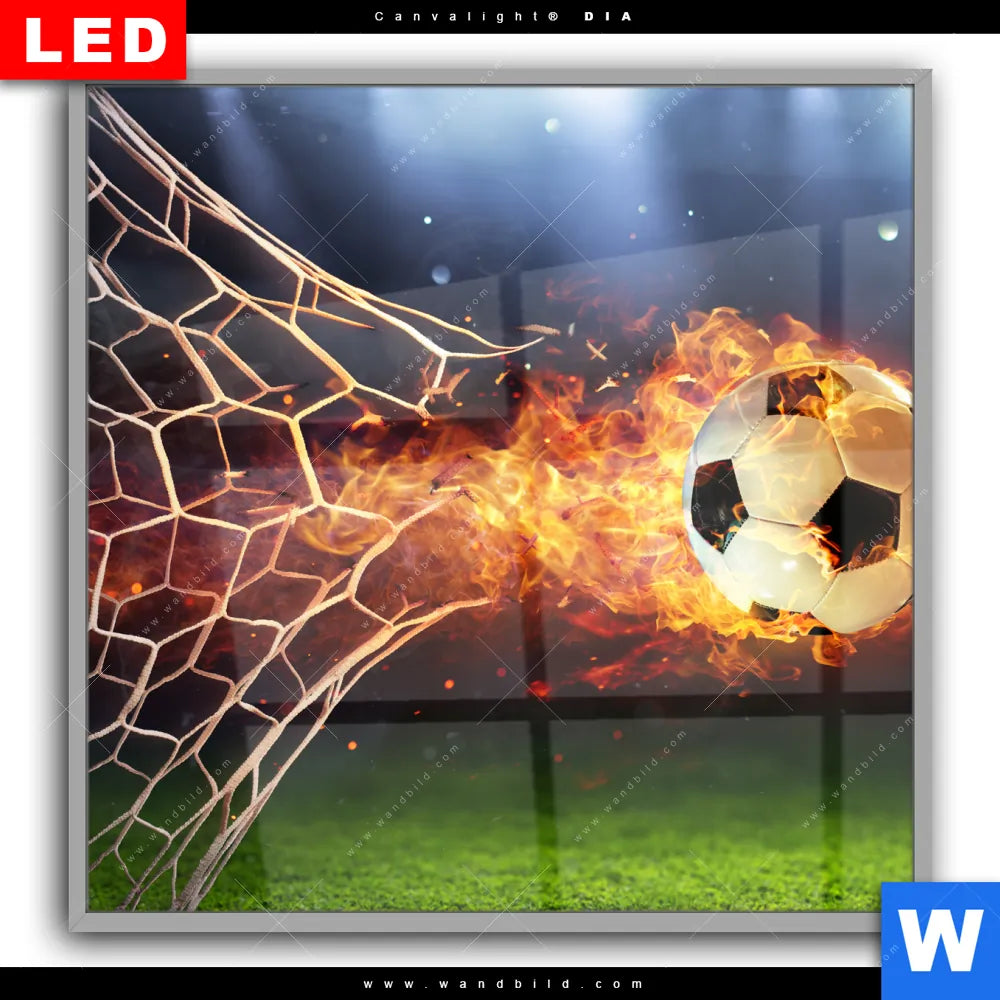 Canvalight® DIA Leuchtbild | Feuriger Fussball | Quadrat