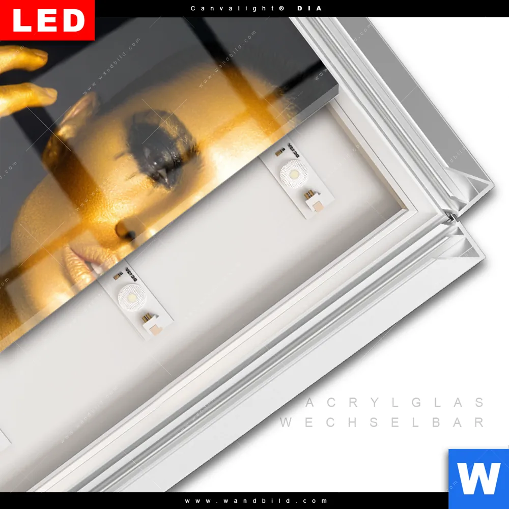 LED-Glasbild mit austauschbarem Acrylglas-Druck (Wechselbild)