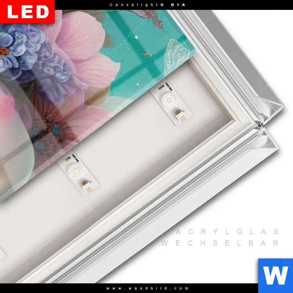 LED-Glasbild mit austauschbarem Acrylglas-Druck (Wechselbild)