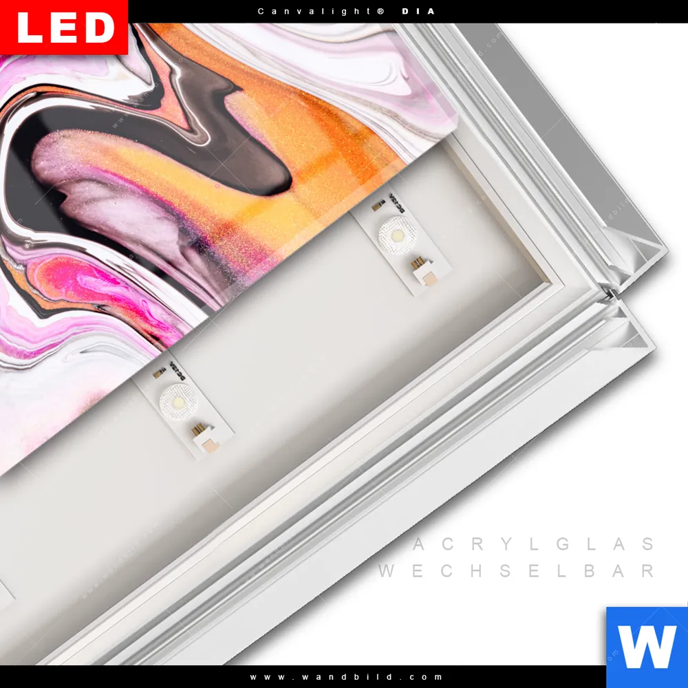 LED-Glasbild mit austauschbarem Acrylglas-Druck (Wechselbild)