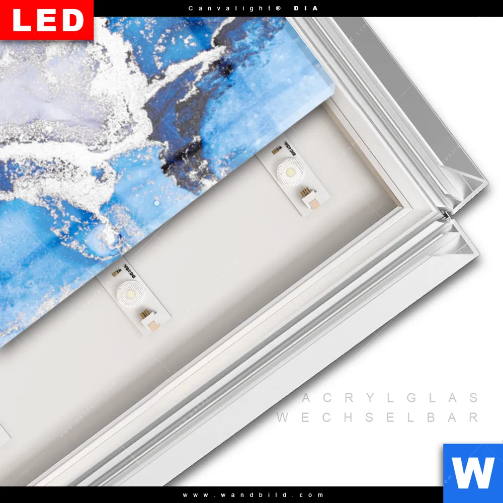 LED-Glasbild mit austauschbarem Acrylglas-Druck (Wechselbild)
