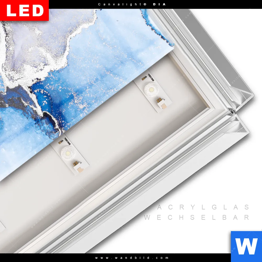 LED-Glasbild mit austauschbarem Acrylglas-Druck (Wechselbild)