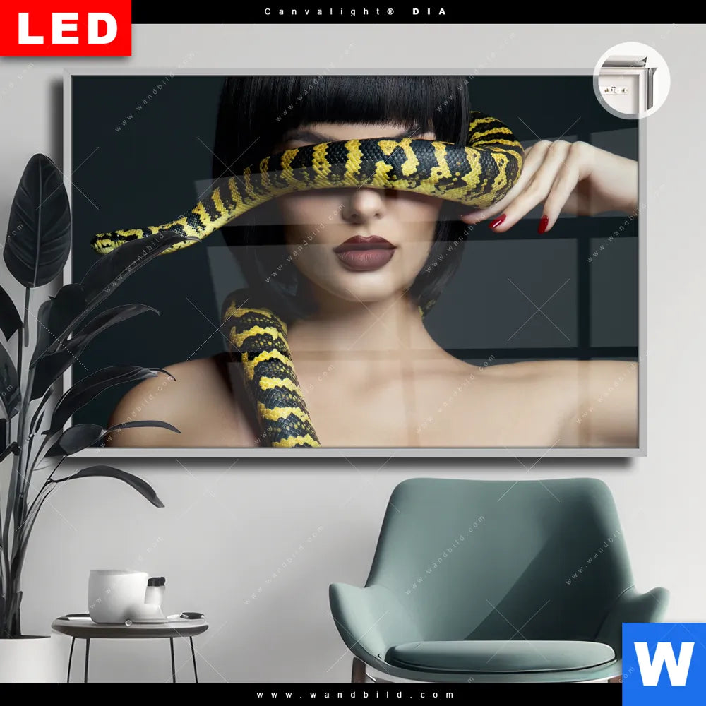 Canvalight® DIA Leuchtbild | Frau mit gelber Schlange | Querformat