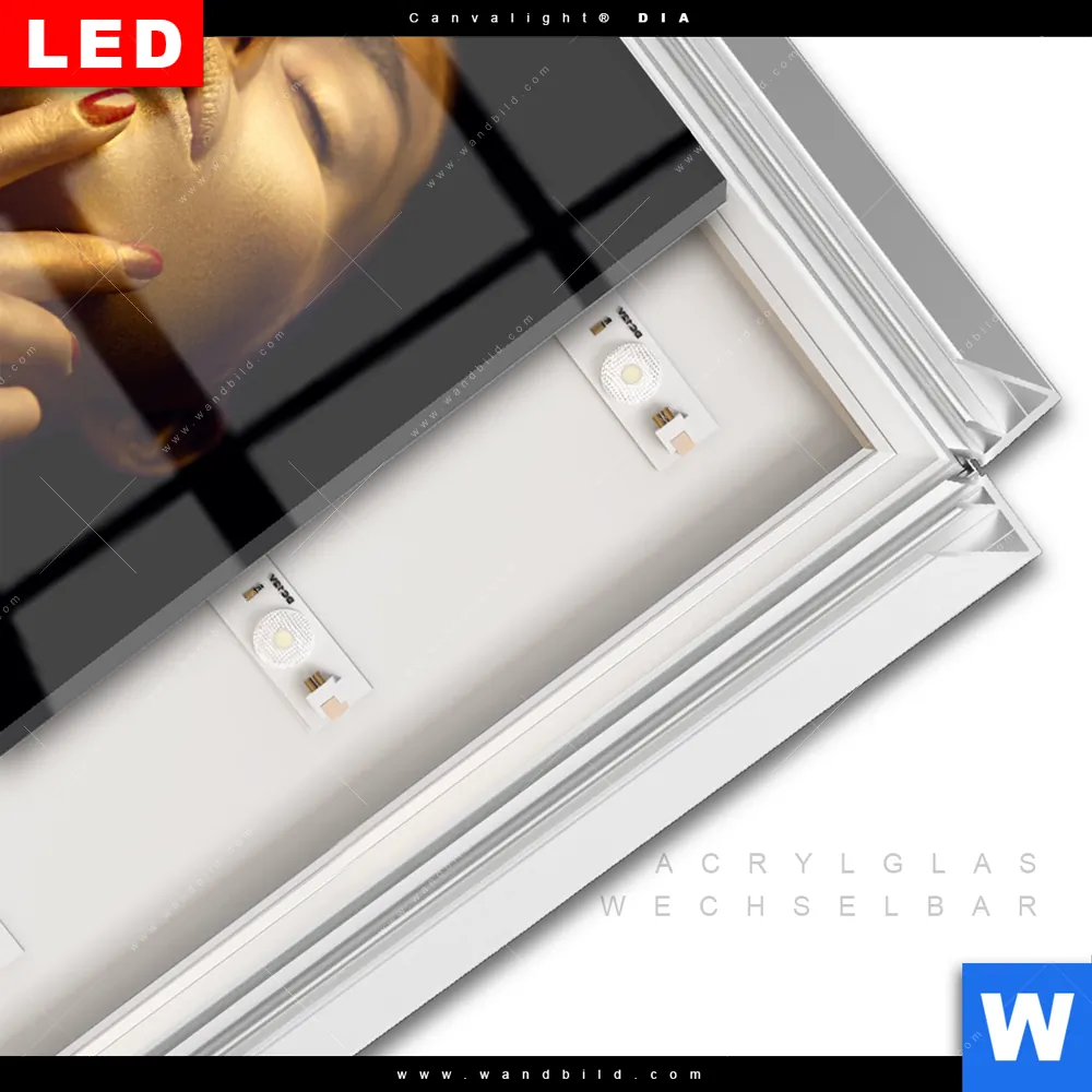 LED-Glasbild mit austauschbarem Acrylglas-Druck (Wechselbild)