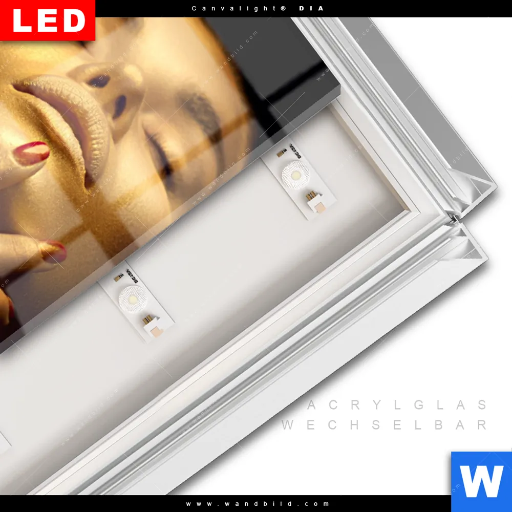 LED-Glasbild mit austauschbarem Acrylglas-Druck (Wechselbild)