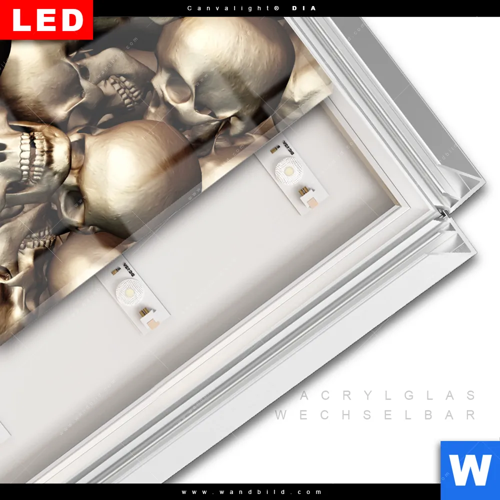 Canvalight® DIA Leuchtbild | Goldene Schädel | Querformat
