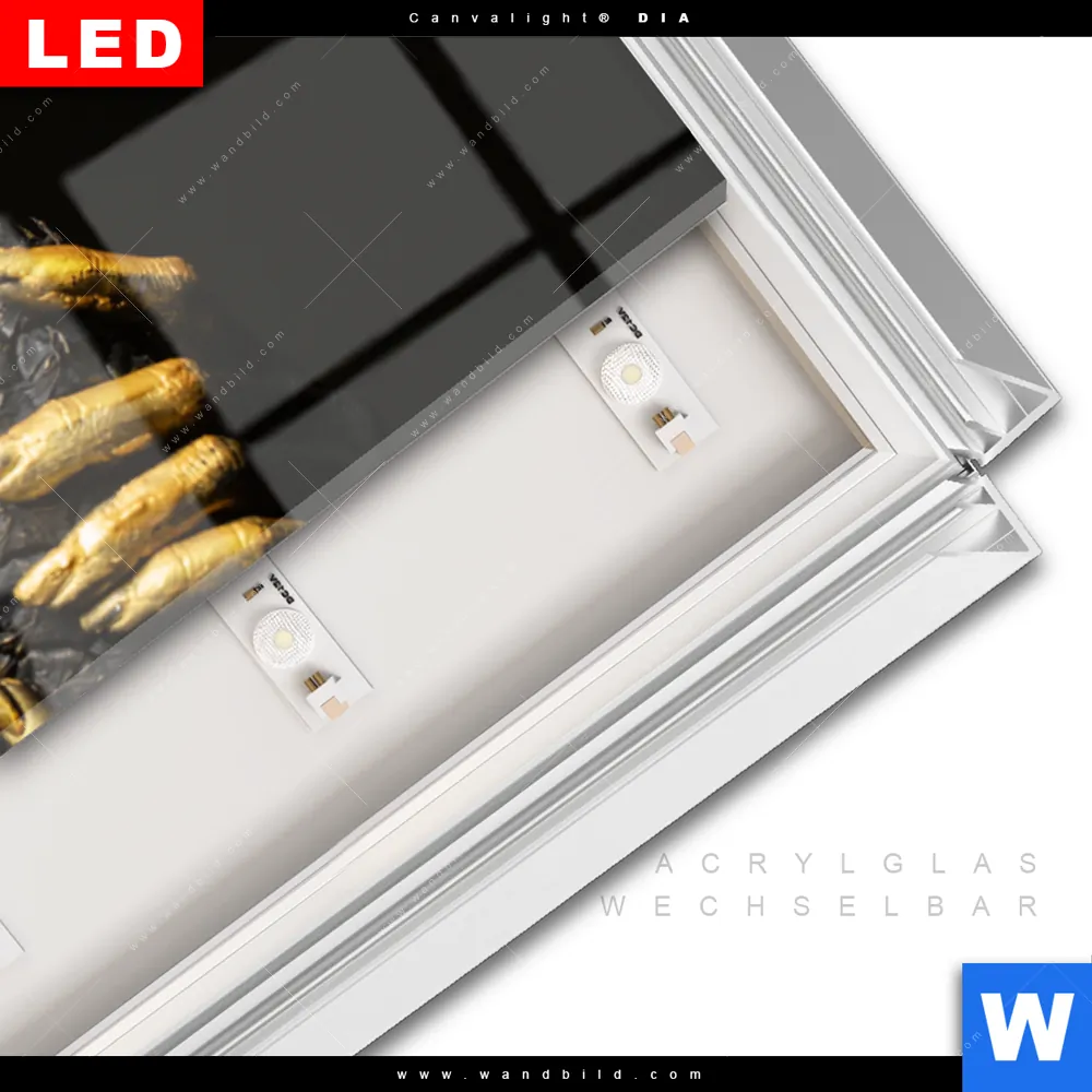 LED-Glasbild mit austauschbarem Acrylglas-Druck (Wechselbild)