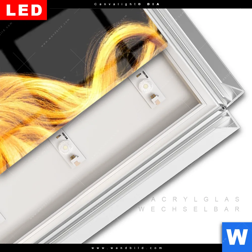 LED-Glasbild mit austauschbarem Acrylglas-Druck (Wechselbild)