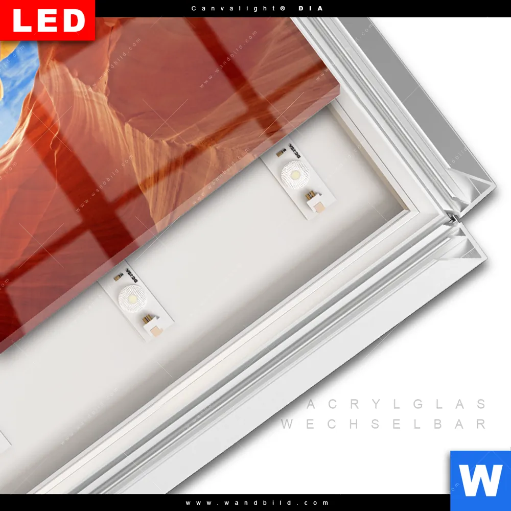 LED-Glasbild mit austauschbarem Acrylglas-Druck (Wechselbild)