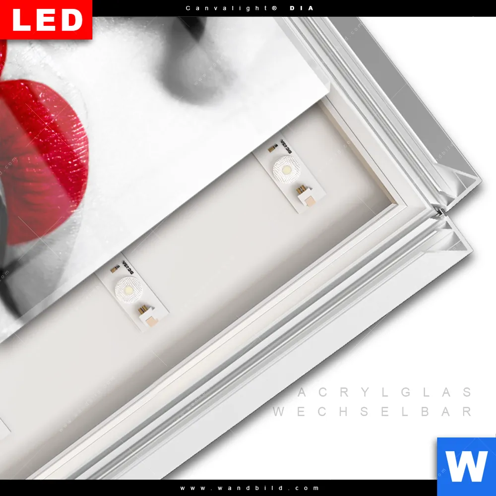LED-Glasbild mit austauschbarem Acrylglas-Druck (Wechselbild)