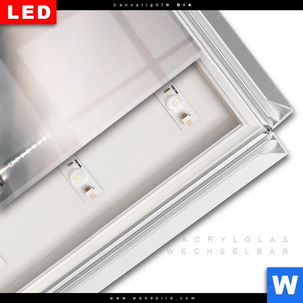 LED-Glasbild mit austauschbarem Acrylglas-Druck (Wechselbild)