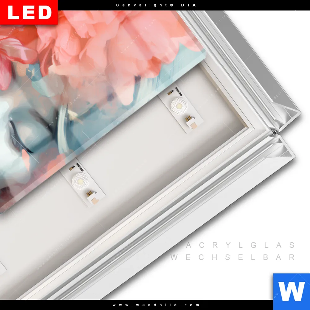 LED-Glasbild mit austauschbarem Acrylglas-Druck (Wechselbild)