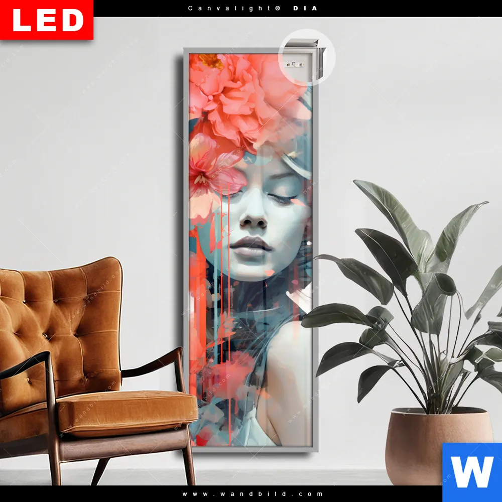 Canvalight® DIA Leuchtbild | Jolanda - Frau mit Blumen im Haar | Schmal